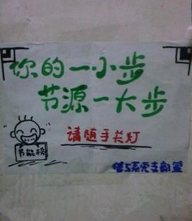 目前,本校學(xué)生對(duì)于隨手關(guān)燈的節(jié)能意識(shí)大幅度增強(qiáng),主要體現(xiàn)在:1、未關(guān)燈的教室越來越少。這個(gè)可能得益于我們持續(xù)不斷的海報(bào)宣傳。2、只有少數(shù)幾個(gè)人的教室只開少數(shù)幾盞燈的情況越來越多:監(jiān)燈小分組成員會(huì)在人少燈開得多的教室溫馨提示同學(xué)們可以少開幾盞燈,大多數(shù)同學(xué)都表示采納和支持,也對(duì)“監(jiān)燈”工作大加贊賞,認(rèn)為這是一件特別有意義的事。3、越來越多的人加入到“監(jiān)燈”的隊(duì)伍中來:相互提醒著人走燈熄的人越來越多,大家相互監(jiān)督著,營造了一種和諧的氛圍。
