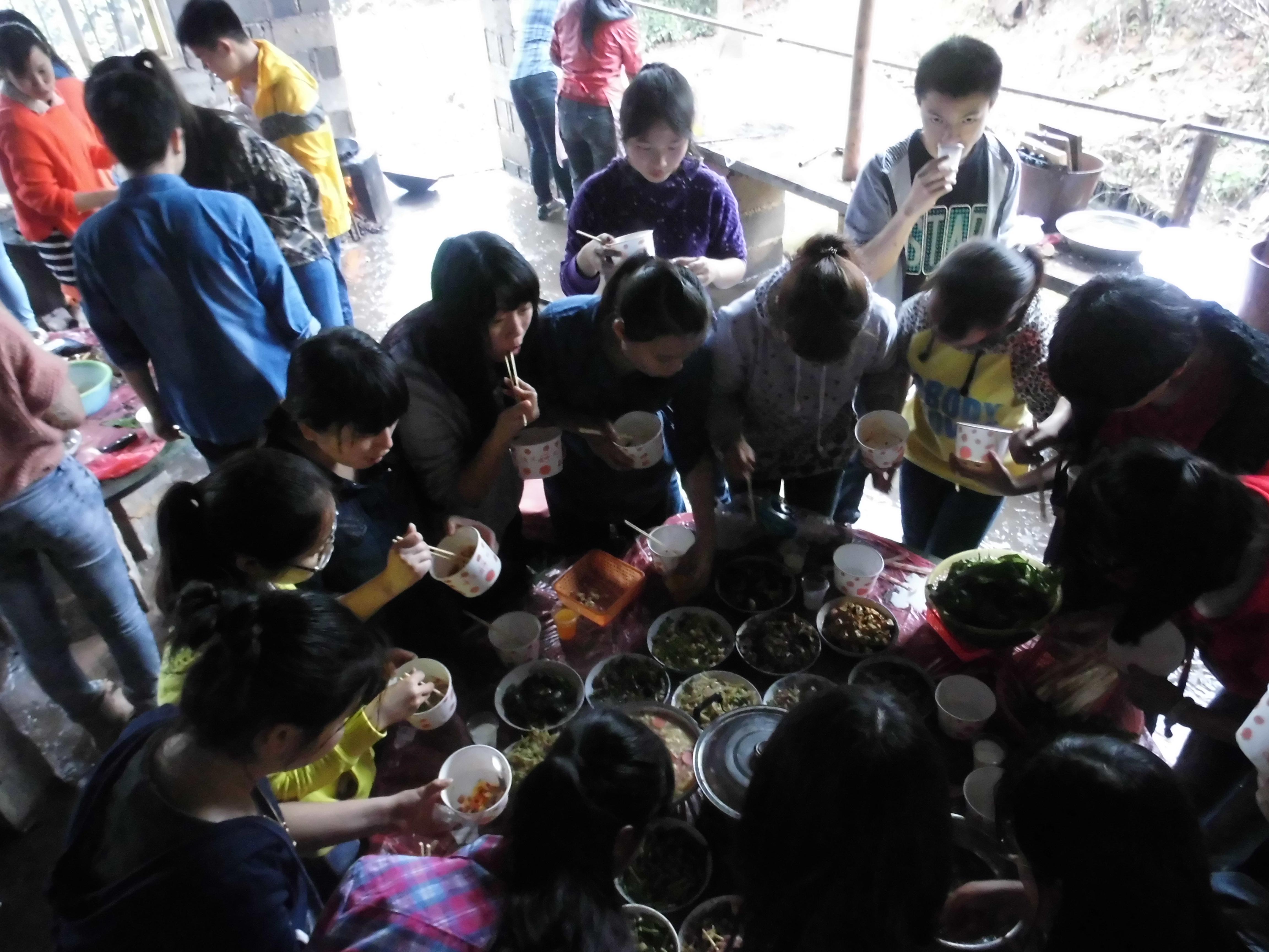 本次活動在天氣惡劣的環(huán)境下依舊有條不紊的進行著,再大的風(fēng)雨也澆滅不了學(xué)生干部們的滿腔熱情。大家克服困難、相互幫助、相互配合,無論是買菜、洗菜、切菜、配菜,還是生火、炒菜等等,餐桌上的每一份可口菜肴,承載的都是大家共同的努力與堅持,充滿了幸福快樂的味道。活動中,易利表揚了干部們廚藝,也積極展現(xiàn)出自己的廚藝,獲得了大家的贊賞。美味的午餐過后,干部們還進行了輕松愉悅的交流活動:唱歌、桌球等等。所有干部表示此次的素質(zhì)拓展活動加強了相互間的了解,縮小了彼此間的距離,是一次難忘的經(jīng)歷。