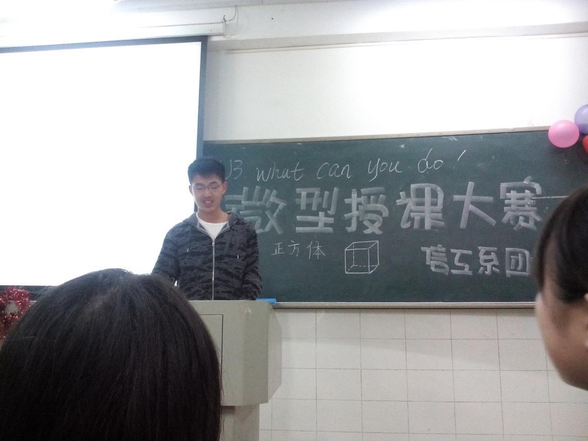 (通訊員 丁青 易利) 為提高同學(xué)們的教學(xué)能力,調(diào)動起大家對教育教學(xué)的興趣。2014年5月5號晚上6點30分,信息科學(xué)與工程系微型賽課在理C504教室成功舉行。擔(dān)任此次賽課的評委有思政理論教學(xué)部少工委主任夏海亞、外語系實踐部副部長兼大學(xué)生就創(chuàng)業(yè)服務(wù)中心主任王佩婷以及我系團總支實踐部部長蔣尚華。此次賽課由實踐部助干王瓊主持。