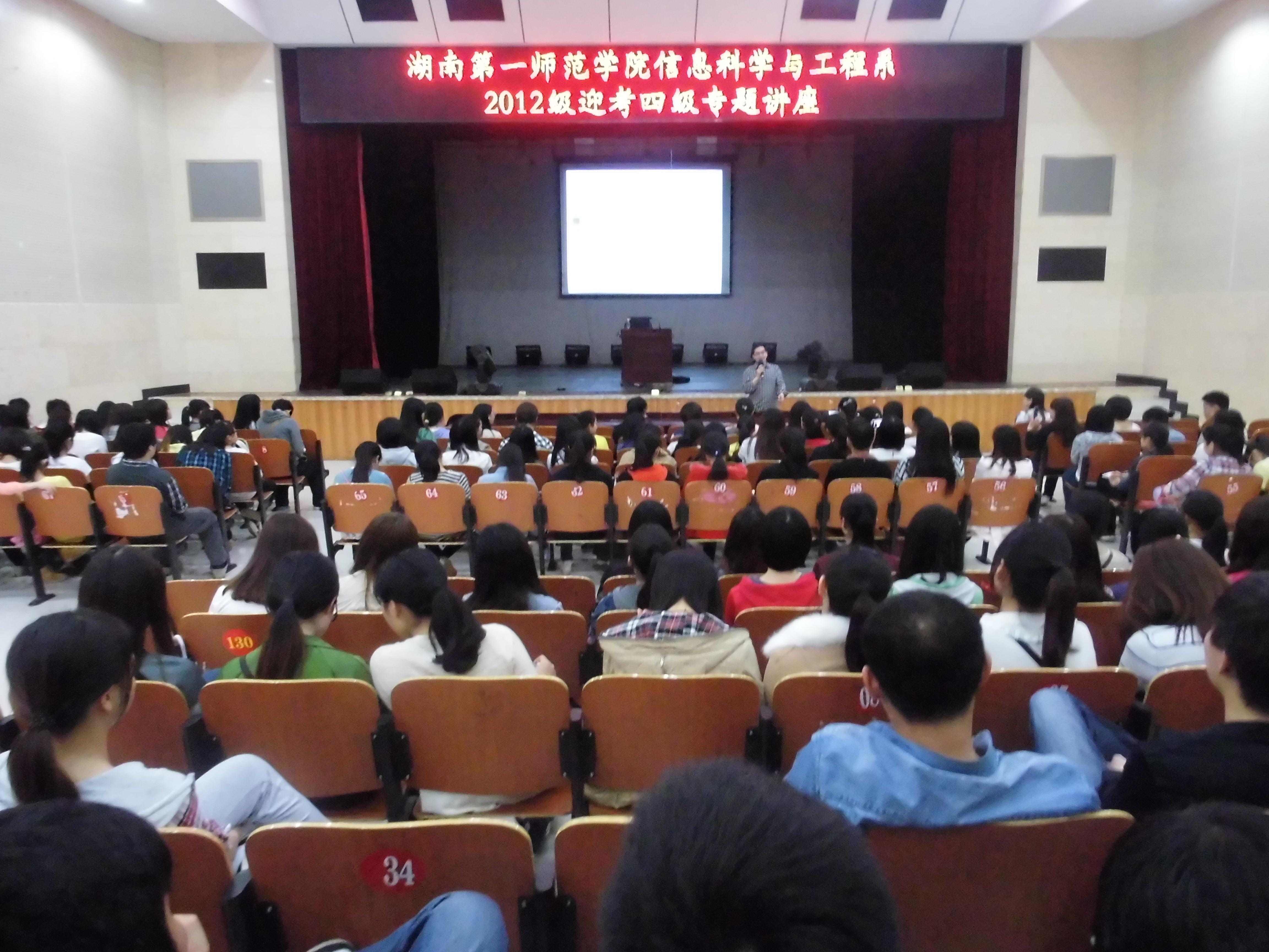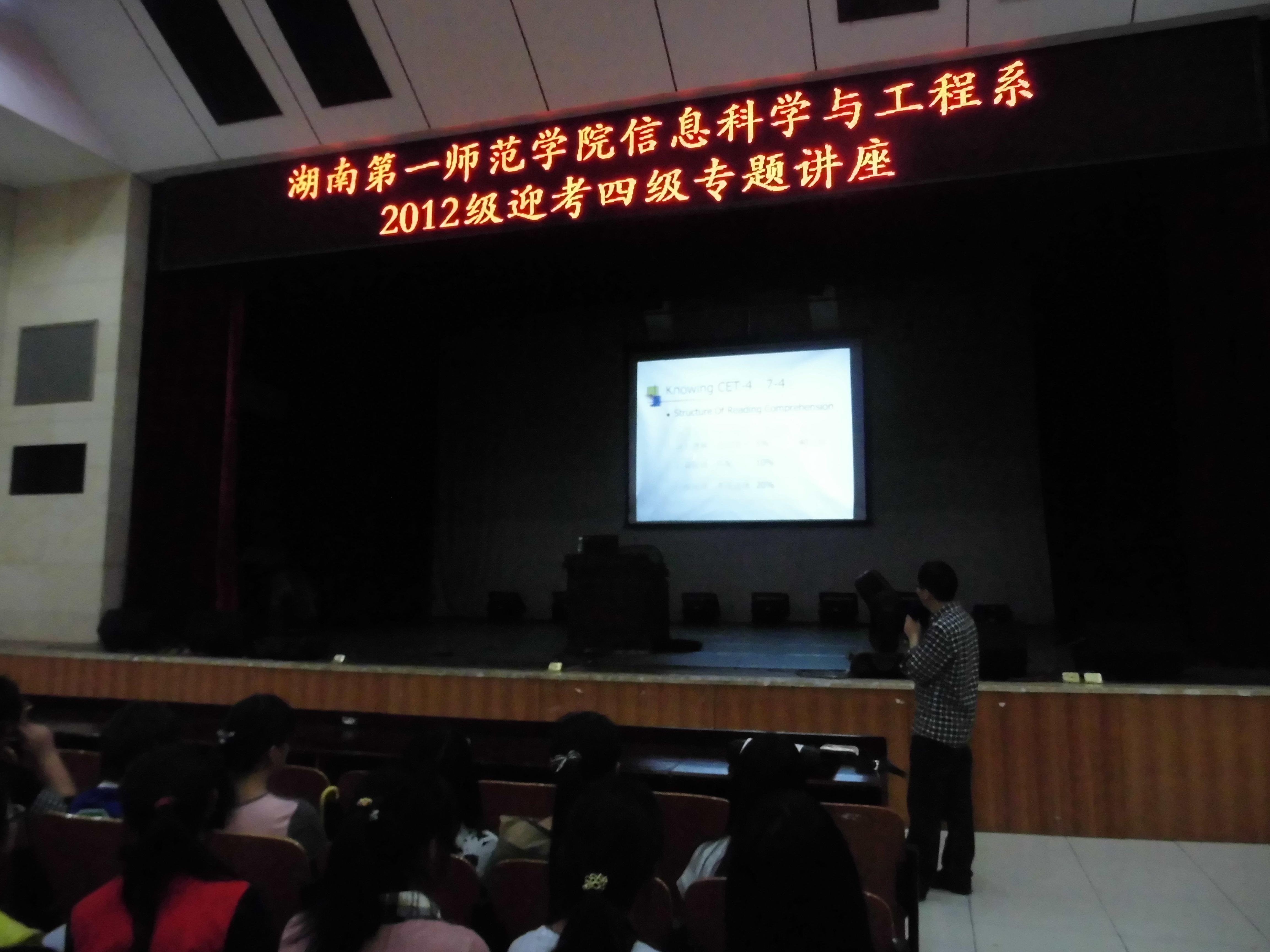 (通訊員 文晶 易利)4月10日,公共外語(yǔ)教學(xué)部劉明東教授應(yīng)信息科學(xué)與工程系邀請(qǐng),在晚上七點(diǎn)于科技樓演播廳隆重舉辦了一場(chǎng)主題為“信息科學(xué)與工程系2012級(jí)迎考四級(jí)”的專題講座。信息科學(xué)與工程學(xué)系主任王杰文、團(tuán)總支書記易利以及全體2012級(jí)學(xué)生共同參與了此次講座。