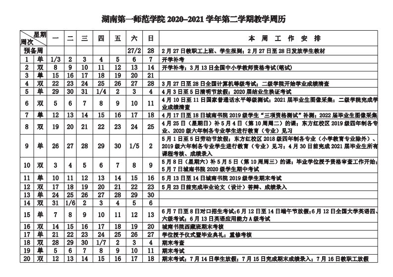 附件 湖南第一師范學(xué)院2020-2021學(xué)年第二學(xué)期教學(xué)周歷.doc