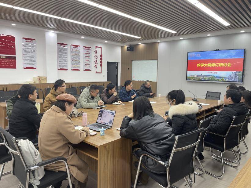 3月5日下午,我院在玉衡樓406會議室召開教學大綱修訂研討會,院督導、系主任、專任教師參加了會議,會議由副院長楊夢云主持。