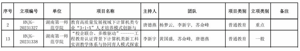 經(jīng)個(gè)人申報(bào)、專(zhuān)家評(píng)審、學(xué)校推薦申報(bào)、湖南省教育廳審核,我院獲湖南省普通高等學(xué)校教學(xué)改革研究項(xiàng)目2項(xiàng),其中重點(diǎn)項(xiàng)目和一般項(xiàng)目各1項(xiàng)。