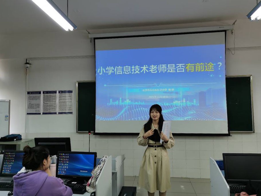 楊老師以自身經(jīng)歷為引,向同學們介紹小學信息技術(shù)老師的日常工作、傳遞了組織管理課堂的優(yōu)秀經(jīng)驗、為同學們大學的學習、生活提出指導與建議。講座中,楊老師細心地回答了同學們提出的一系列相關問題,消除了同學們關于“小學教育技術(shù)老師”的疑問,同學們也表示今后會加強專業(yè)理論學習,提高自身的信息素養(yǎng)。最后,楊老師為同學們帶來一場精彩“項目研討課”的示范課,讓與會同學們對小學信息技術(shù)課有直觀的感受。