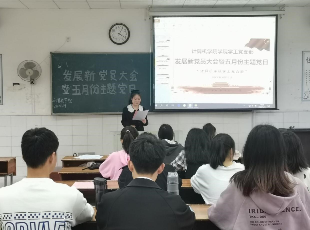 我院于2022年5月19日開展了發(fā)展新黨員大會暨五月份主題黨日活動。與會人員有學(xué)院黨委書記劉立勇、黨委副書記陳奕、學(xué)工黨支部書記關(guān)紅儒、學(xué)院團(tuán)委書記葉晶、學(xué)工辦老師付小霞、全體學(xué)生黨員以及發(fā)展對象。