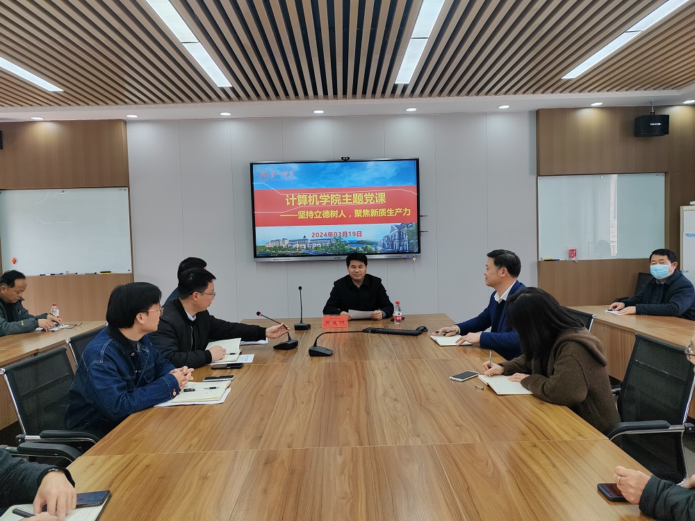 3月19日下午,校黨委委員、副校長周發(fā)明在玉衡樓406會(huì)議室講授主題黨課,計(jì)算機(jī)學(xué)院全體黨員教師參加了學(xué)習(xí),院黨委書記劉立勇主持。