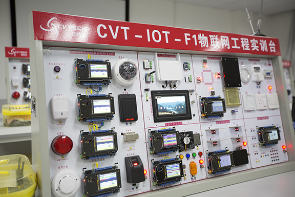 物聯(lián)網(wǎng)工程實(shí)驗(yàn)室是計(jì)算機(jī)學(xué)院專業(yè)實(shí)驗(yàn)室,建立于2017年9月,隸屬計(jì)算機(jī)工程實(shí)驗(yàn)教學(xué)中心,位于玉衡樓404,面積78.12平方米,現(xiàn)有設(shè)備包括8套CVT-10T-F1物聯(lián)網(wǎng)工程實(shí)訓(xùn)臺(tái)、1套CVT-ZNJS物聯(lián)網(wǎng)行業(yè)應(yīng)用智慧教室應(yīng)用系統(tǒng)、1套ET-iLink server物聯(lián)網(wǎng)私有云服務(wù)系統(tǒng)、1臺(tái)E525物聯(lián)網(wǎng)定位服務(wù)系統(tǒng),1套E529智慧交通北斗/GPS雙定位終端、8臺(tái)DELL電腦等實(shí)驗(yàn)設(shè)備,資產(chǎn)總值56.36萬(wàn)元。主要承擔(dān)計(jì)算機(jī)科學(xué)與技術(shù)、通信工程、電子信息工程等專業(yè)的物聯(lián)網(wǎng)技術(shù)與應(yīng)用、物聯(lián)網(wǎng)通信技術(shù)、移動(dòng)應(yīng)用開(kāi)發(fā)等課程的課程實(shí)訓(xùn),可提供無(wú)線網(wǎng)絡(luò)通信、信息處理、物聯(lián)網(wǎng)系統(tǒng)的傳感層、傳輸層及應(yīng)用層等專業(yè)技能訓(xùn)練,為培養(yǎng)學(xué)生具備面向現(xiàn)代信息處理技術(shù),培養(yǎng)從事物聯(lián)網(wǎng)領(lǐng)域的系統(tǒng)設(shè)計(jì)、系統(tǒng)分析與科技開(kāi)發(fā)及研究等方面的高級(jí)工程技術(shù)人才提供良好的實(shí)訓(xùn)平臺(tái)。