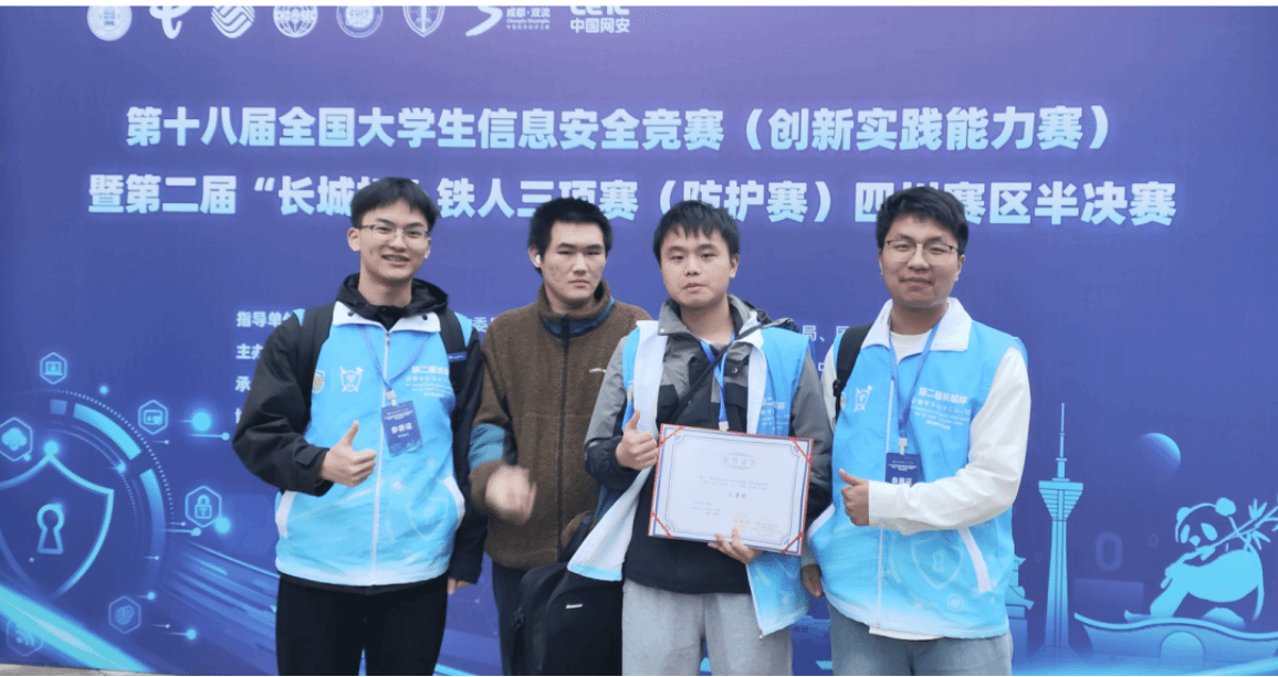 本屆賽事聚焦實(shí)戰(zhàn)化攻防對抗與綜合滲透能力,創(chuàng)新采用AWDP(Attack·With Defense·Preparation)與ISW(Integrated·Security·Work)雙賽道模式。通過攻防兼?zhèn)涞馁愔圃O(shè)計(jì),旨在以賽促學(xué)、以賽育才,全面推動(dòng)高校教育、科技、人才一體化發(fā)展。由我院周文杰、許強(qiáng)、徐鵬、劉坤浩四位同學(xué)組成的參賽隊(duì),經(jīng)過層層選拔晉級半決賽,最終憑借扎實(shí)的技術(shù)功底與創(chuàng)新思維,在激烈角逐中脫穎而出,榮獲四川賽區(qū)三等獎(jiǎng)。