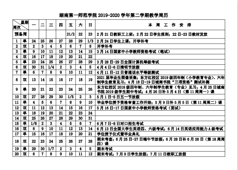 附件:湖南第一師范學(xué)院2019-2020學(xué)年第二學(xué)期教學(xué)周歷