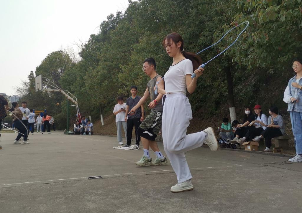 一陣陣音樂傳來,不絆繩比賽的參賽選手們正隨著音樂不斷跳躍。學(xué)生們很快進(jìn)入狀態(tài),卡著音樂的節(jié)奏點(diǎn),輕快的跳了起來。且為了合上音樂的節(jié)拍,大家紛紛加快速度,各種跳繩方式和學(xué)生們不經(jīng)意露出的表情讓比賽變得更加有趣,氣氛也變得更加熱烈。在激烈地角逐下,20教技1班趙乙俸獲得女子此項(xiàng)比賽第一名,20計(jì)科1班楊毅獲得男子此項(xiàng)比賽得第一名。