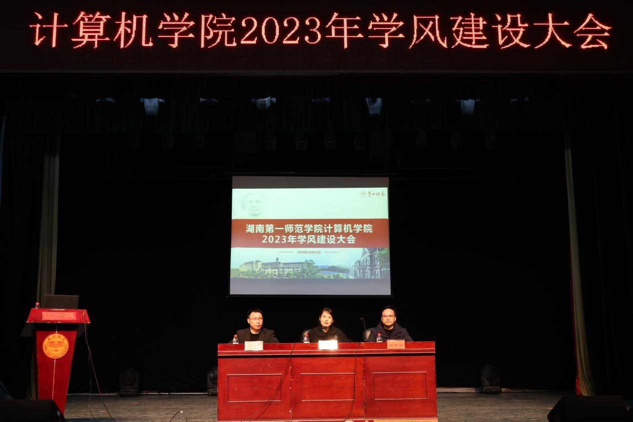 12月14日晚,計算機學(xué)院在特立南實驗劇場召開學(xué)院學(xué)風(fēng)建設(shè)大會,院黨委副書記陳奕,副院長李新宇、楊夢云,全體班主任、輔導(dǎo)員以及學(xué)院學(xué)生代表參加了此次大會。會議由陳奕主持。