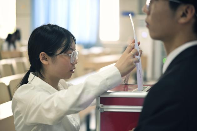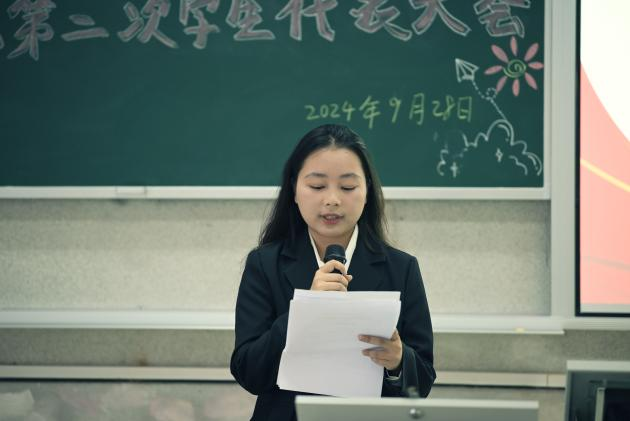 莊嚴(yán)的國歌聲后,全體會議正式開始。陳奕和校學(xué)生會代表分別宣讀了院黨委、校學(xué)生會對大會的批復(fù)。學(xué)生代表施程曦宣讀了《計算機(jī)學(xué)院2023-2024學(xué)年學(xué)生會工作報告》,帶領(lǐng)全體參會人員共同回顧了過去一年的工作歷程和取得的成績。隨后,會議表決通過了新一屆學(xué)生會主席團(tuán)成員候選人名單、常任代表委員會委員名單以及選舉相關(guān)的監(jiān)票人、計票人名單等議案。各位代表投票選舉產(chǎn)生了新一屆的學(xué)生會主席團(tuán)成員。