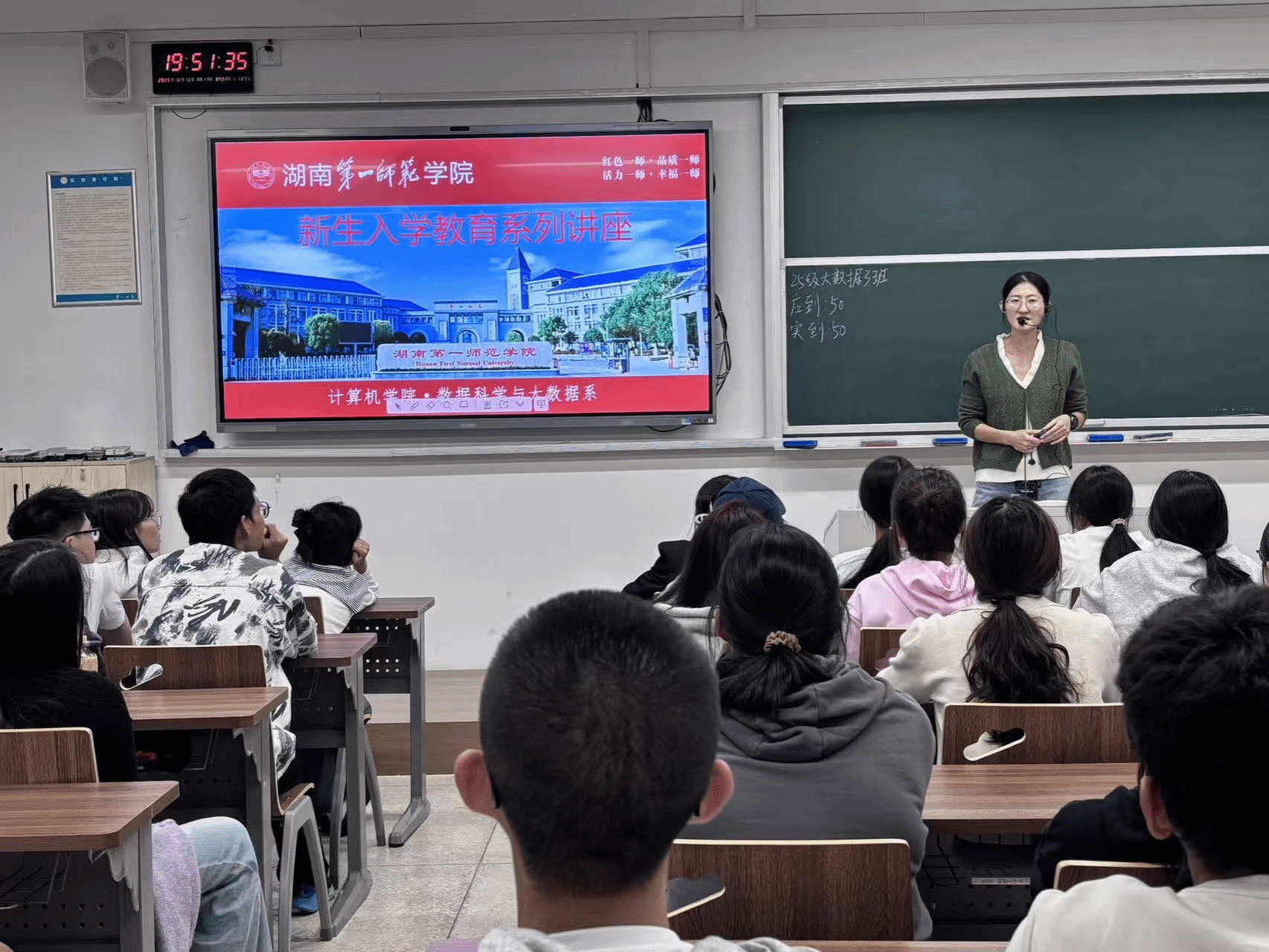 10月13日晚,數(shù)據(jù)科學(xué)與大數(shù)據(jù)技術(shù)專業(yè)在懷中南101教室舉行了新生入學(xué)教育專題講座。講座由數(shù)據(jù)科學(xué)與大數(shù)據(jù)技術(shù)系主任馬麗莎擔(dān)任主講人,2025級(jí)該專業(yè)全體新生參加。