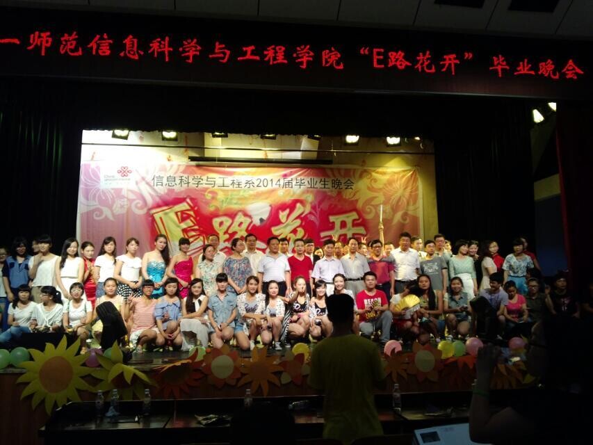 (通訊員 丁青 吳玲峰 易利) 2014年6月18日晚,信息科學與工程學院2014屆“E路花開”畢業(yè)典禮暨畢業(yè)生歡送晚會于科技樓演播廳隆重舉辦。湖南第一師范學院科研處處長李勇帆,公管中心主任朱承學、資產(chǎn)管理處副處長楊建良、信息科學與工程學院院長王杰文,副院長肖建華,黨總支書記謝培松,副書記張如健、院部二十余名教師代表及300余名學生觀看了整場晚會。