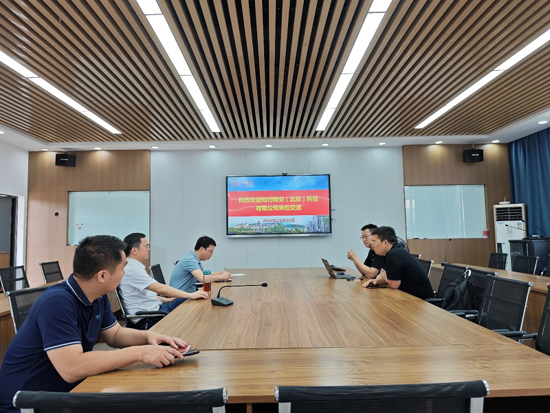 5月28日上午,知行網(wǎng)安(北京)科技有限公司總經(jīng)理張廣慶一行來我院考察交流,院長楊恒伏、副院長李新宇、網(wǎng)絡(luò)安全系主任周聰?shù)热藚⒓恿吮敬螘h,會議由李新宇主持。