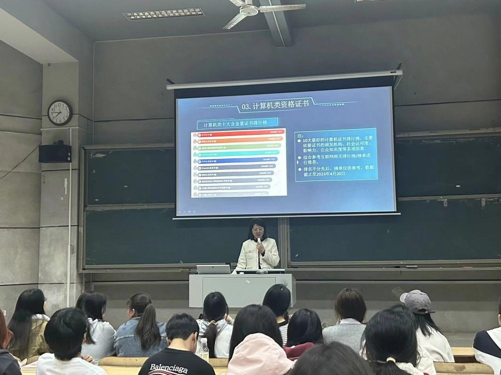 為幫助學(xué)生做好職業(yè)生涯規(guī)劃,提高就業(yè)競爭力,4月8日,邱雪影老師在潤寰南105報告廳開展了計算機類學(xué)生職業(yè)發(fā)展和行業(yè)資格證書備考指導(dǎo)講座,計算機學(xué)院22級、23級各班代表參加了講座,講座由副院長李新宇主持。