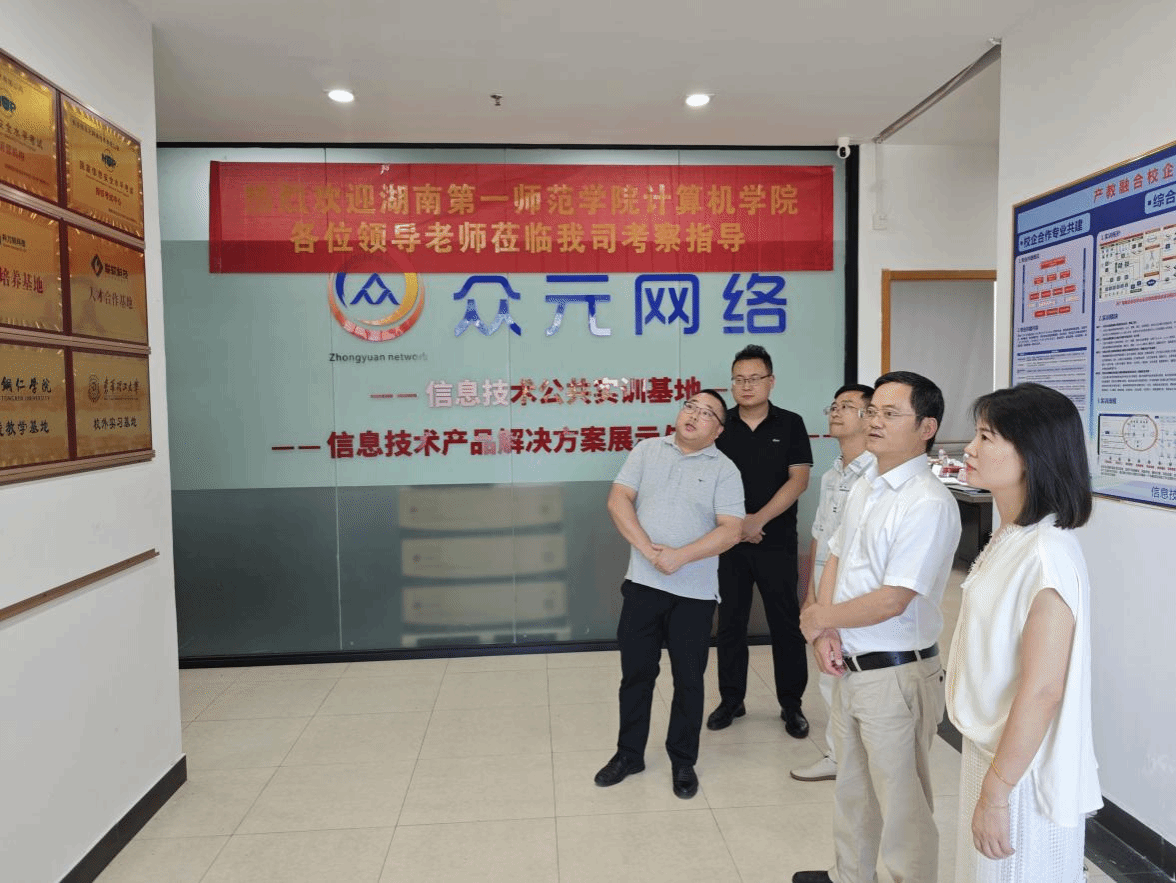 7月1日,計算機學院院長楊恒伏、院黨委副書記陳奕及專業(yè)老師葉君炎、輔導員湯艷一行,前往長沙眾元網(wǎng)絡(luò)有限公司走訪看望“新工科新航向夢之隊”暑期“雙百行”實踐團眾元分隊學生。