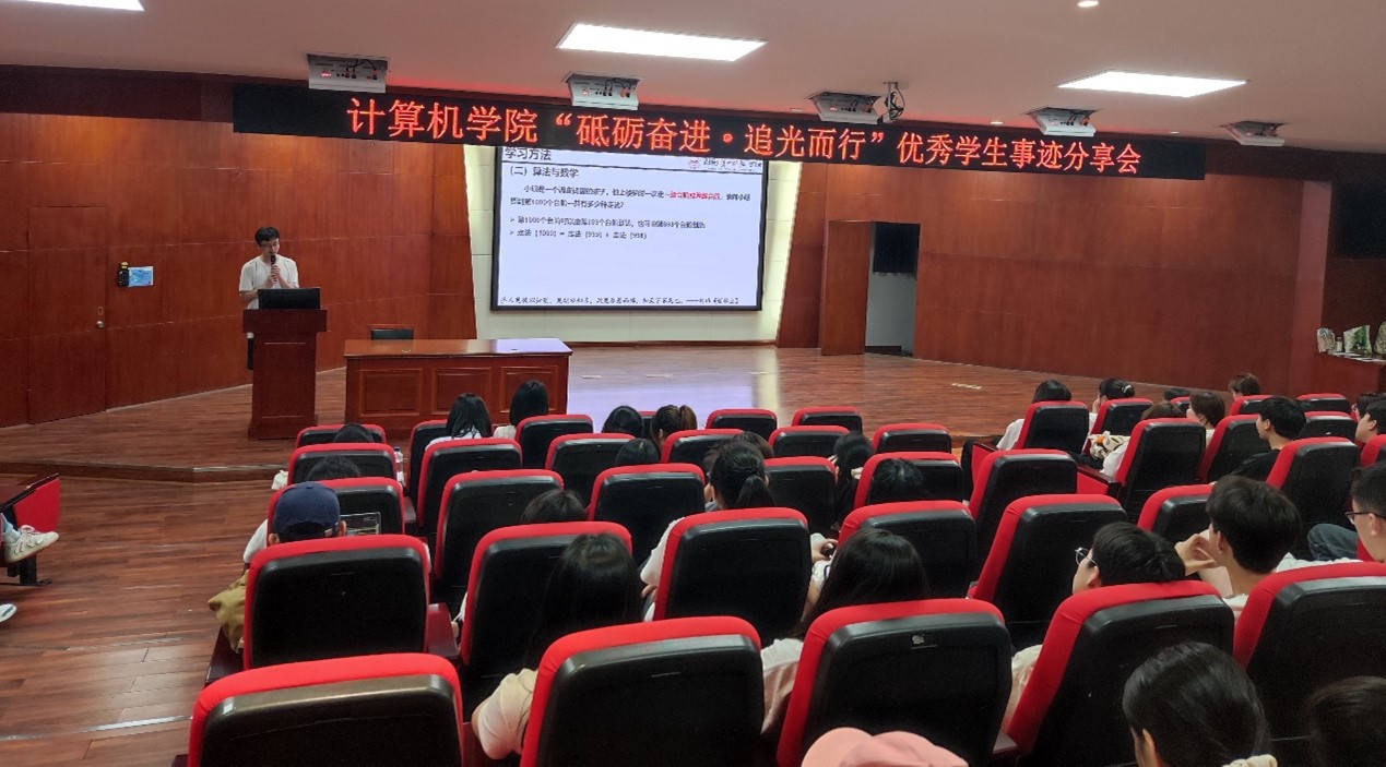 5月15日晚,計(jì)算機(jī)學(xué)院在特立南112模擬法庭召開(kāi)“砥礪奮進(jìn),追光而行”優(yōu)秀學(xué)生事跡分享會(huì)。計(jì)算機(jī)學(xué)院22級(jí)、23級(jí)學(xué)生代表及智能制造學(xué)院學(xué)生代表到現(xiàn)場(chǎng)聆聽(tīng),本次宣講會(huì)由計(jì)算機(jī)學(xué)院資助專干湯艷老師主持。