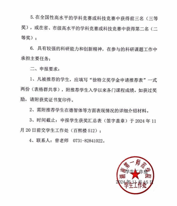 上一條:2024年度徐特立教育基金會“優(yōu)秀學(xué)生獎”評選方案