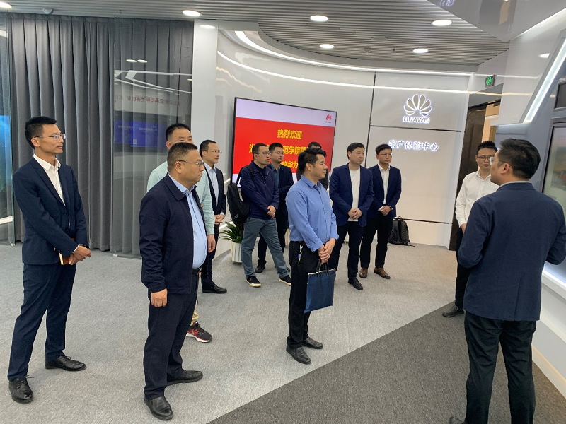 在吳振華的陪同下,周發(fā)明一行參觀了華為數(shù)字化創(chuàng)新體驗(yàn)中心展廳,了解華為公司發(fā)展現(xiàn)狀以及相關(guān)產(chǎn)品。