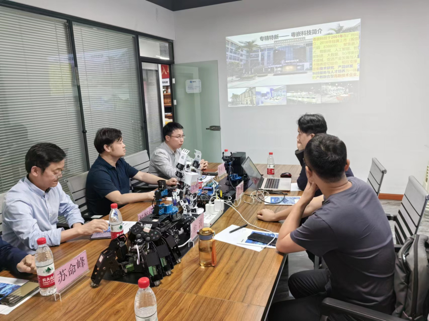 在廣州粵嵌通信科技股份有限公司,劉立勇、楊恒伏一行參觀了企業(yè)展示中心,詳細了解了粵嵌科技的發(fā)展歷程、業(yè)務布局、技術創(chuàng)新成果,以及粵嵌科技智能制造的創(chuàng)新建設等。座談會上,雙方就校企合作展開了交流。周龍指出,校企合作是雙方協(xié)同發(fā)展的重要一環(huán),期待雙方通過優(yōu)勢互補,在課程建設、智能應用人才培養(yǎng)、科研項目合作等方面展開深入交流,希望與學院在人才培養(yǎng)和科研合作方面實現(xiàn)共贏。楊恒伏從學科建設、師資隊伍、人才培養(yǎng)、辦學特色等方面介紹了學校的發(fā)展情況。他指出,學院將以此次訪企為契機,繼續(xù)深化與企業(yè)的合作關系,推動校企合作向更高層次、更廣領域發(fā)展。同時,學院也將根據(jù)企業(yè)的反饋和建議,不斷優(yōu)化課程設置和教學模式,提高人才培養(yǎng)質(zhì)量,為社會培養(yǎng)更多優(yōu)秀的專業(yè)人才。