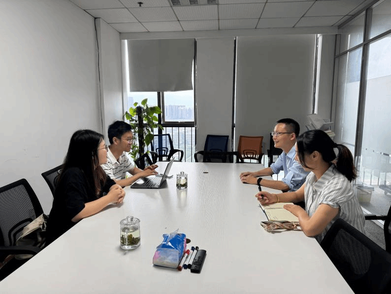 能川工作人員陳圣良對學(xué)院一行到訪表示熱烈歡迎,并詳細(xì)介紹了企業(yè)在技術(shù)研發(fā)、人才需求等方面的情況。她提到,能川高度重視與我院合作,期待通過交流,構(gòu)建更緊密的人才共育、科研協(xié)同機制,實現(xiàn)互利共贏。葉君炎介紹了計科系的師資情況,希望精準(zhǔn)對接企業(yè)需求,為學(xué)生拓展實習(xí)渠道,同時在科研攻關(guān)、成果轉(zhuǎn)化等方面建立合作。